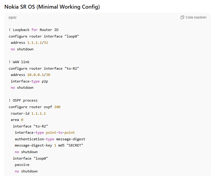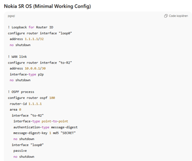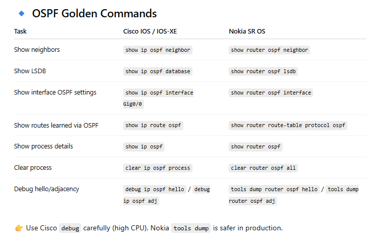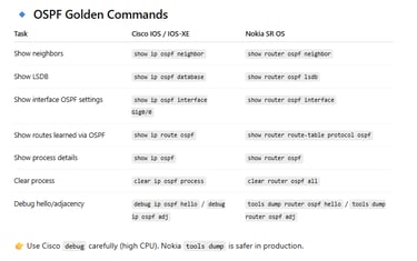 Golden commands – Cisco & Nokia side by side, for quick copying.